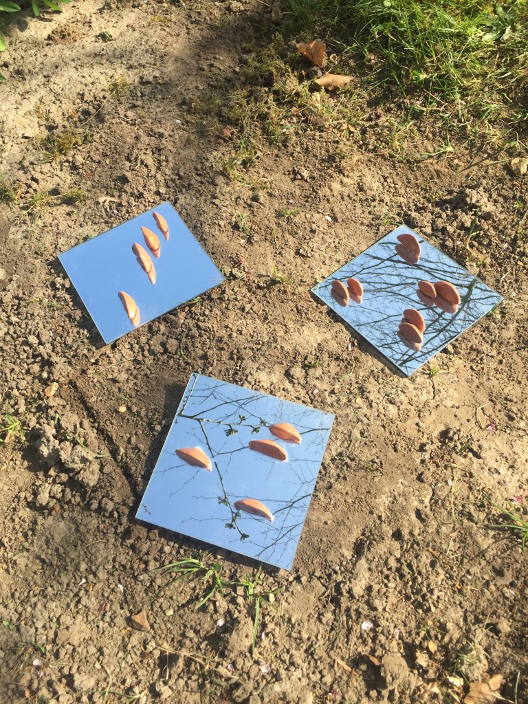 Emma Carter Millet, Between Heaven and Earth, (mirrors and clay mushrooms), 15 x 15 cm, 2021.